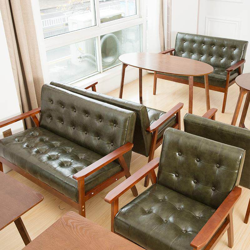 咖啡厅沙发西餐厅奶茶店甜品店复古实木休闲洽谈桌椅组合餐饮家具
