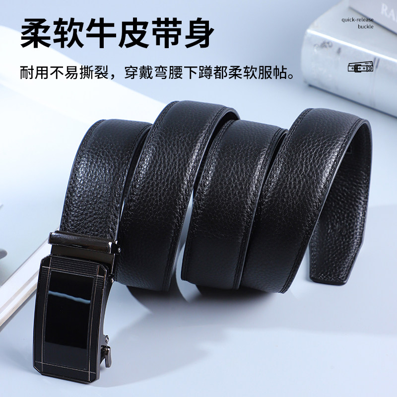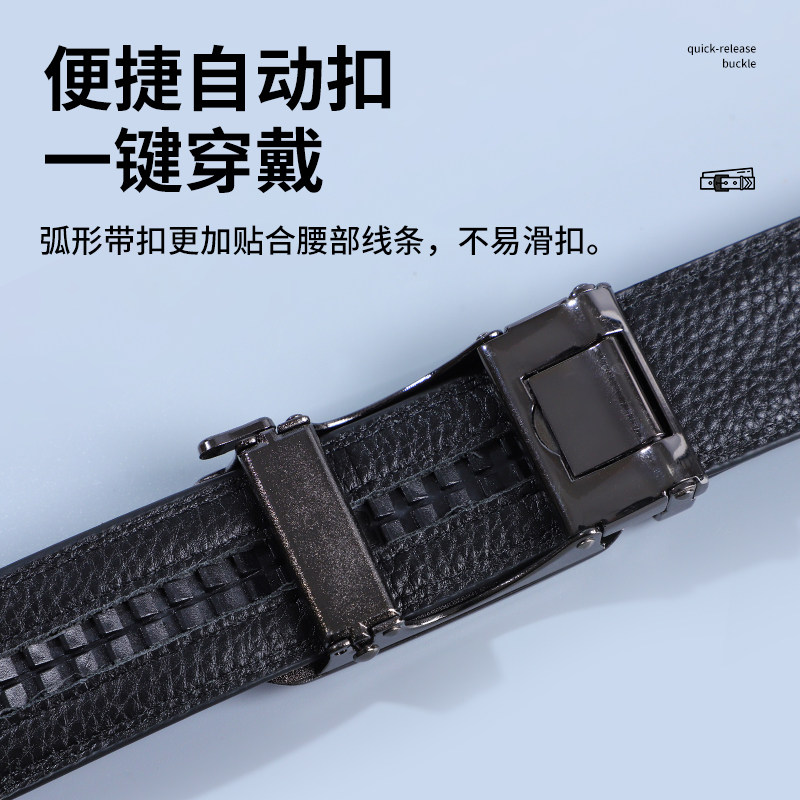 新款男士真皮腰带压边自动扣带头层牛皮简约商务高端礼盒款裤带