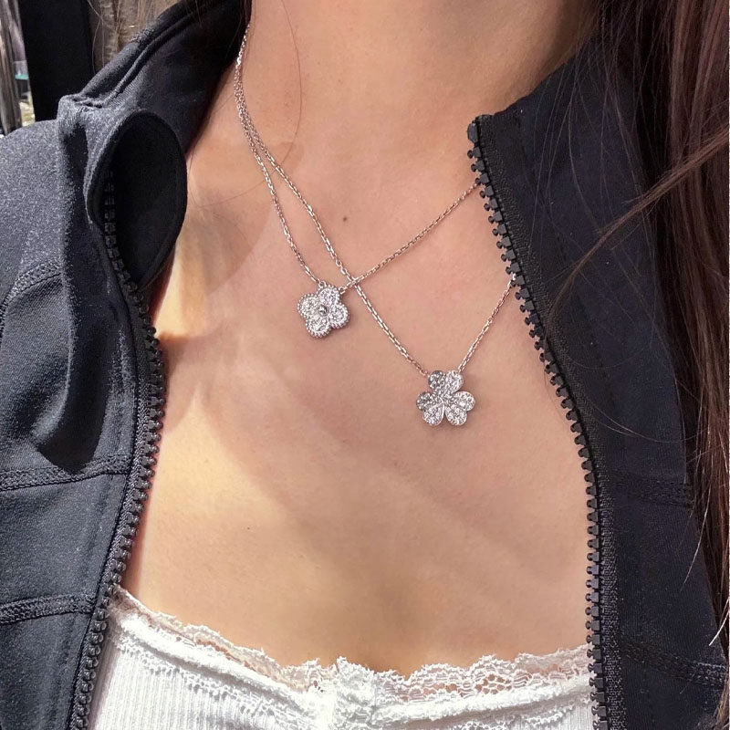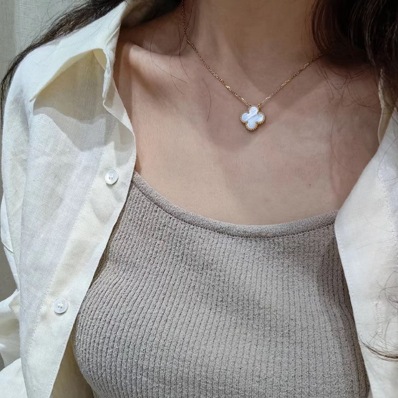 轻奢单花四叶草项链女小众锁骨链吊坠礼物白金贝母玫瑰金黄金带钻
