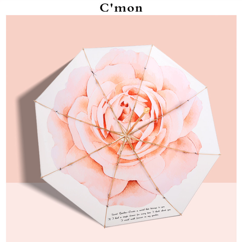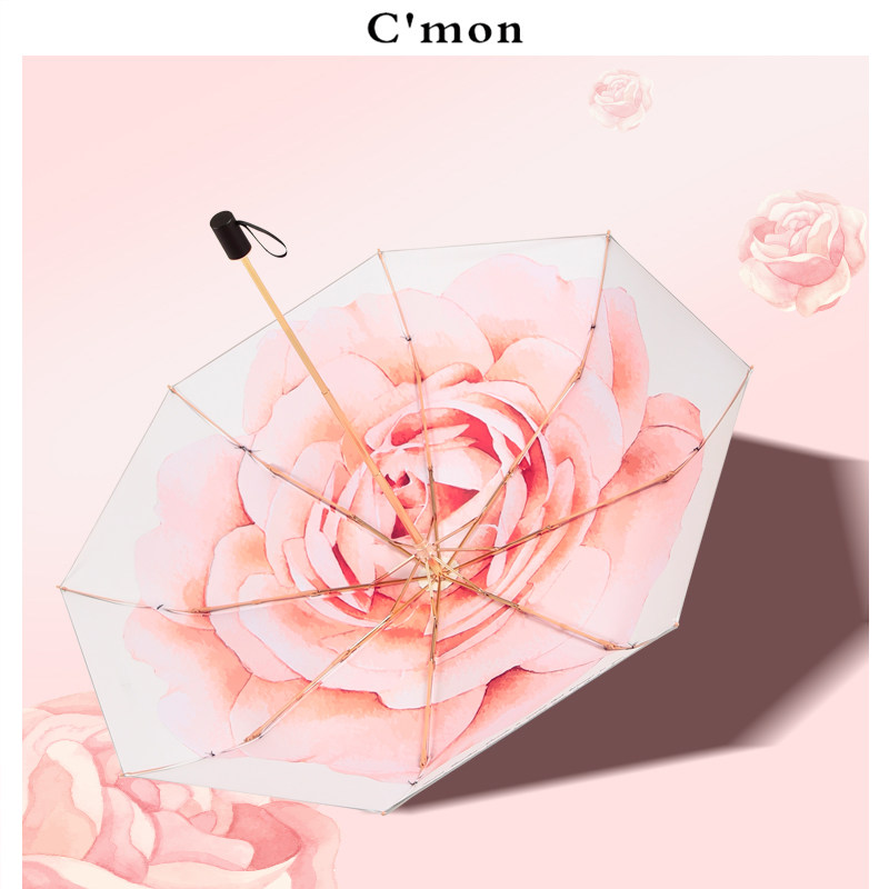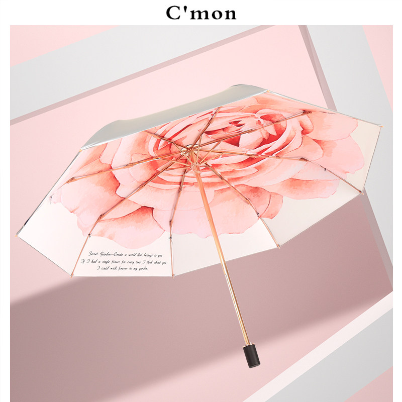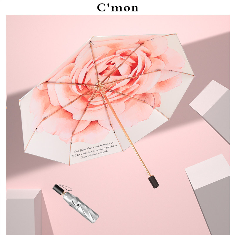 Cmon玫瑰银胶防晒复古太阳伞女防紫外线遮阳伞超轻晴雨伞折叠两用