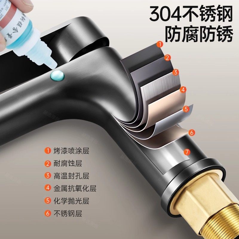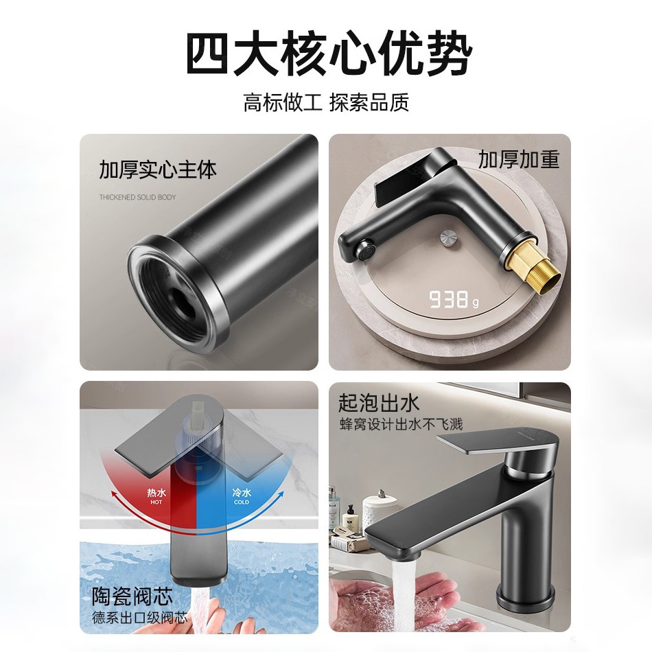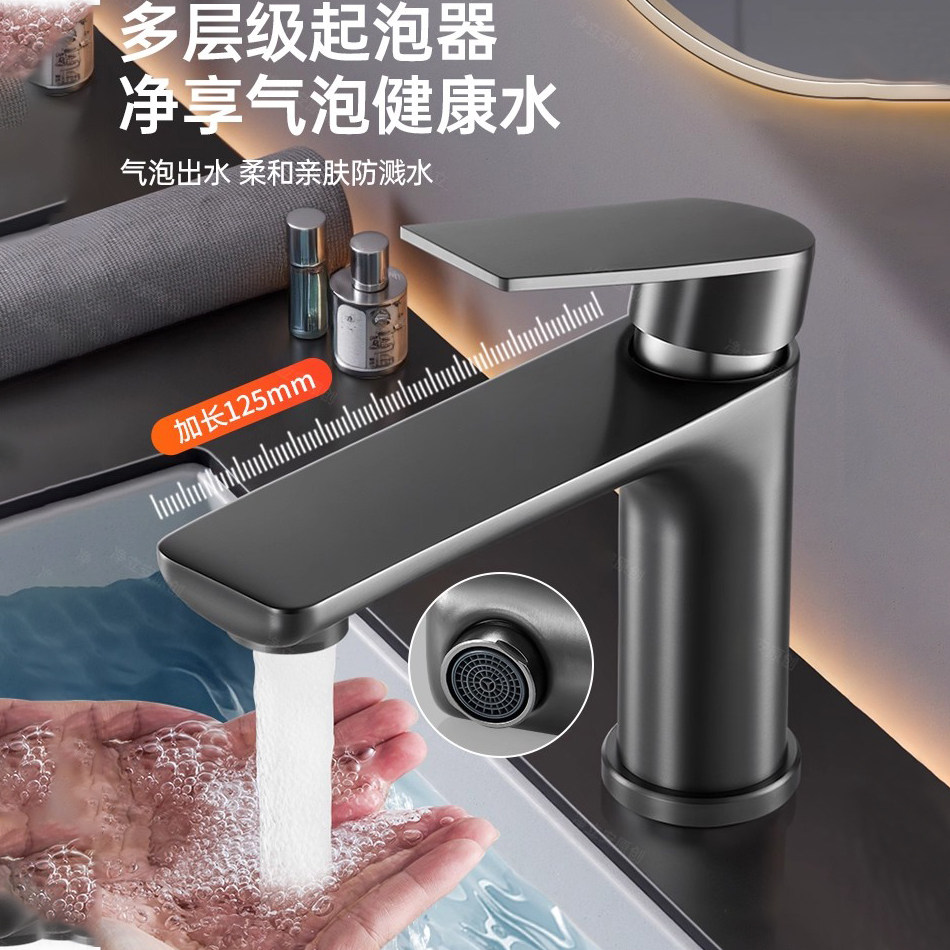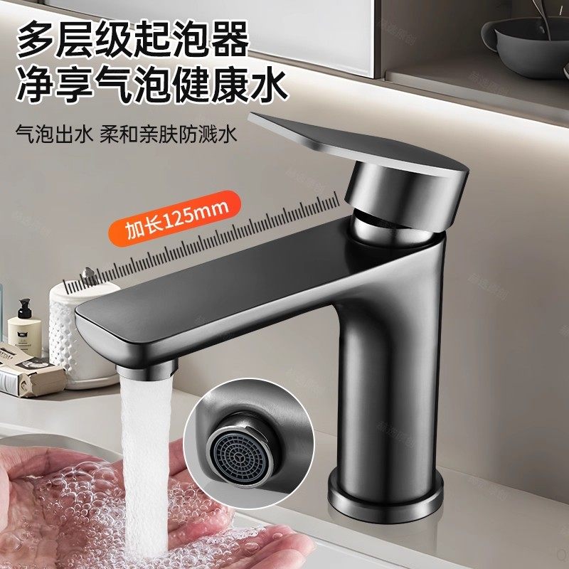 不锈钢水龙头家用冷热水洗脸盆龙头卫生间洗面盆台盆单冷双孔全铜