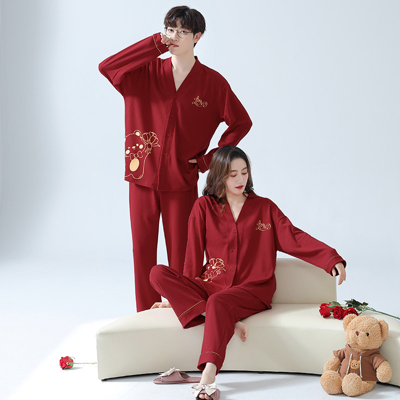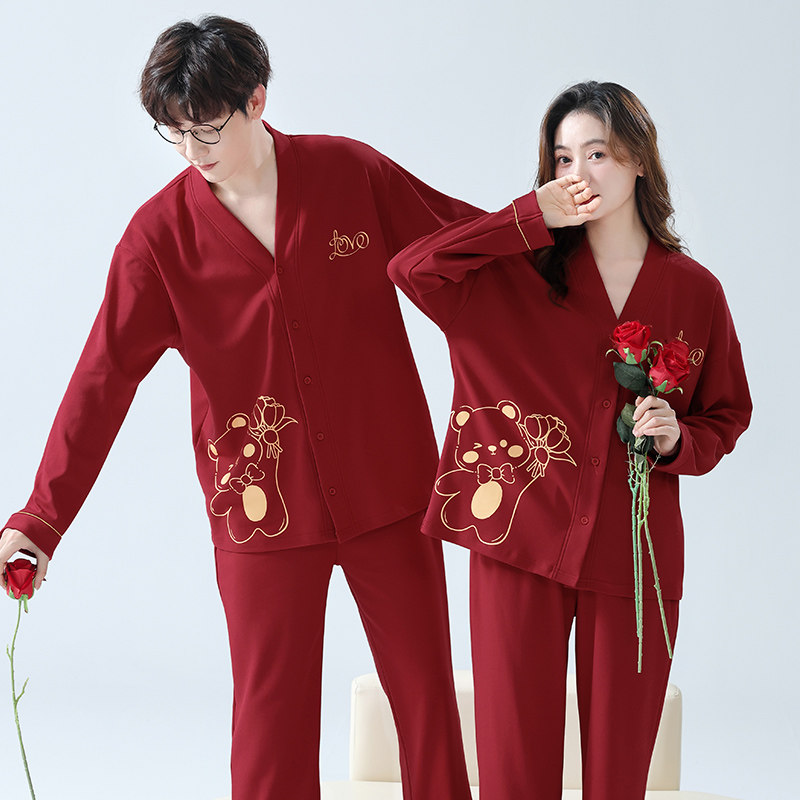大红睡衣情侣结婚新婚春秋款套装本命年喜庆一男一女家居服冬开衫