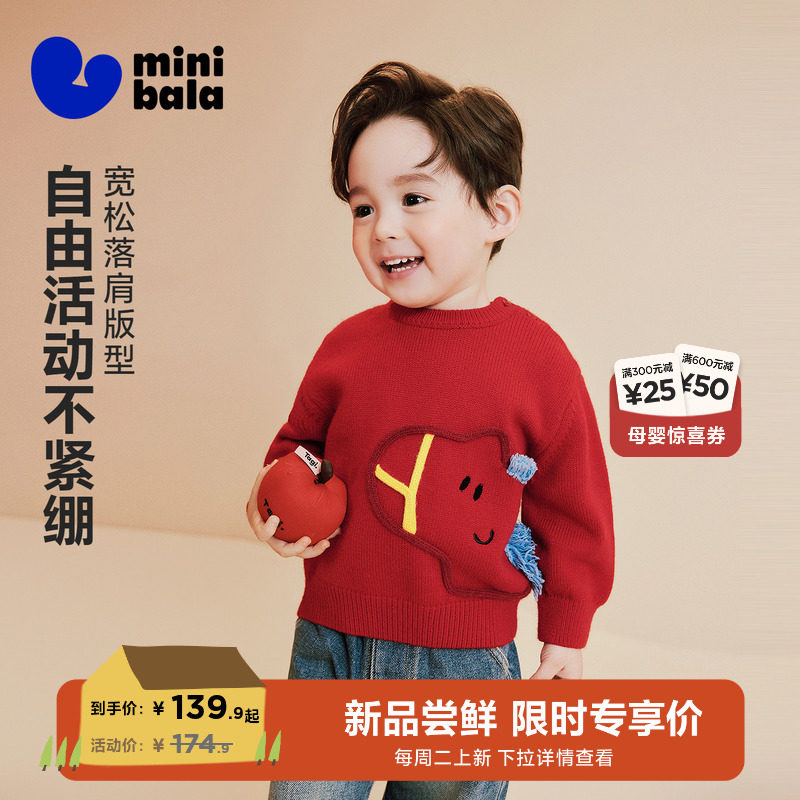 【新年毛衣】迷你巴拉男女童宝宝毛衫冬季柔软拜年服圣诞红色上衣