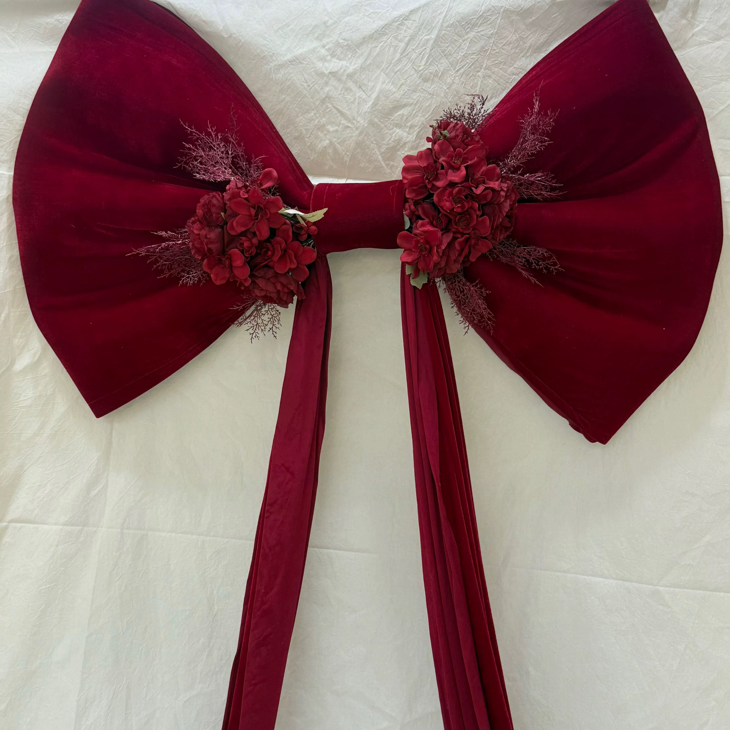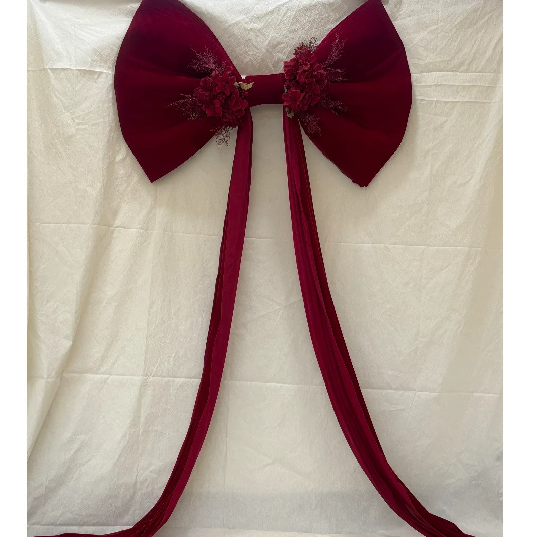 大蝴蝶结背景布结婚拍照道具婚礼现场布置装饰红色丝绒布幔背景墙