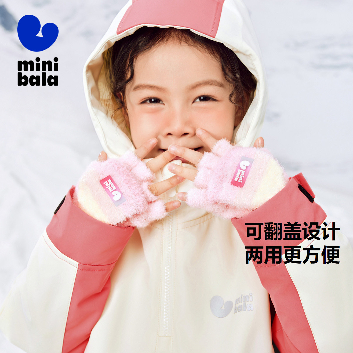 迷你巴拉巴拉男童女童半指翻盖高弹毛线手套冬季新款男女童