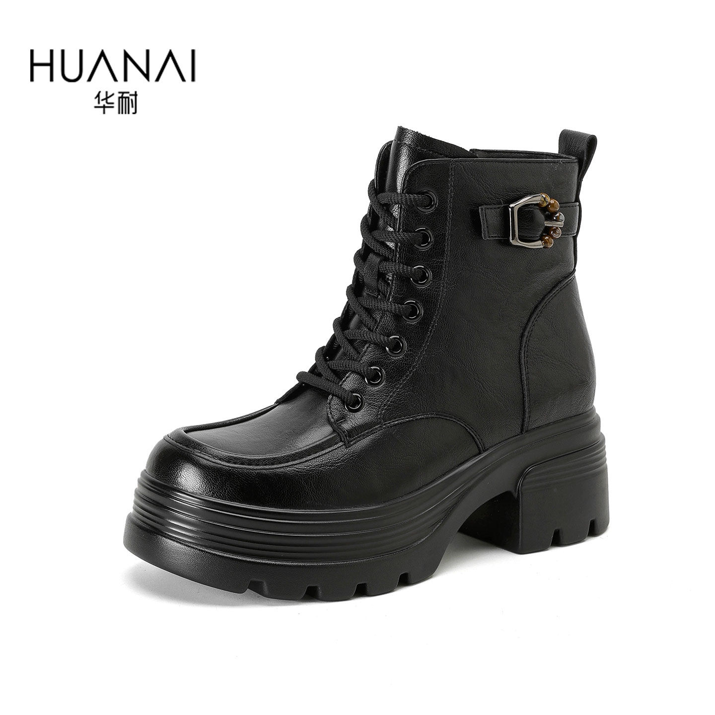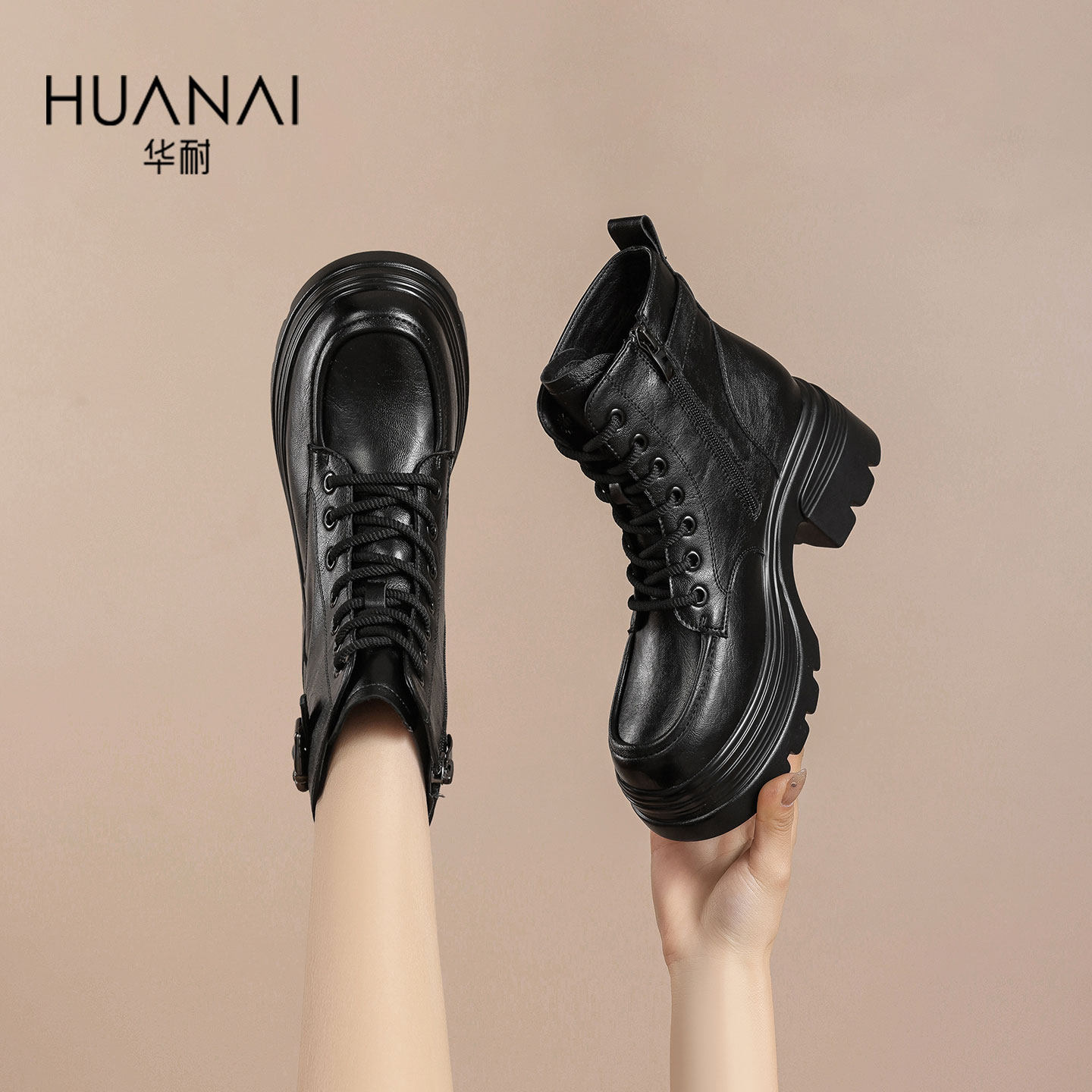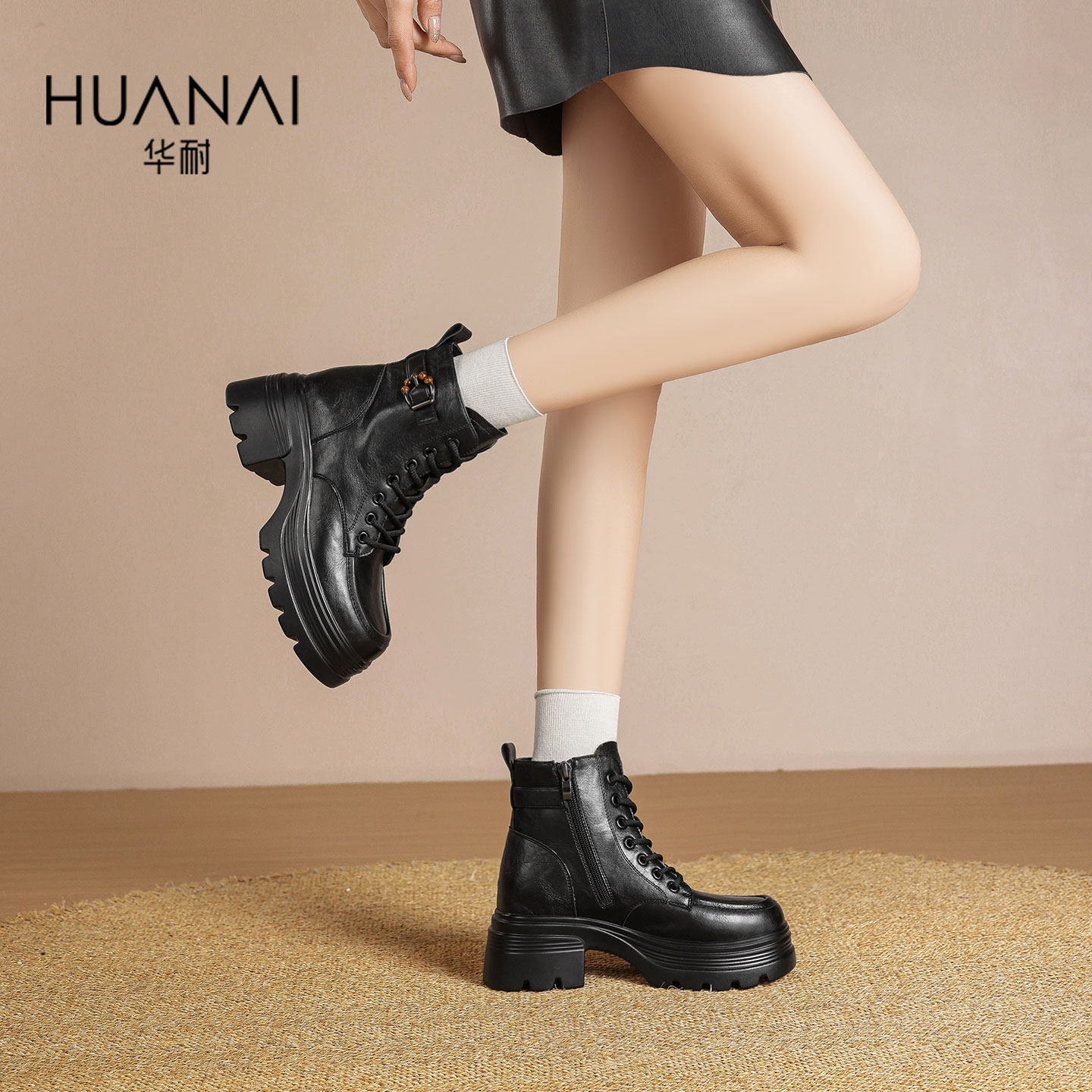 华耐加绒厚底马丁靴女款2025新款秋冬季英伦风短靴子显高爆款女靴