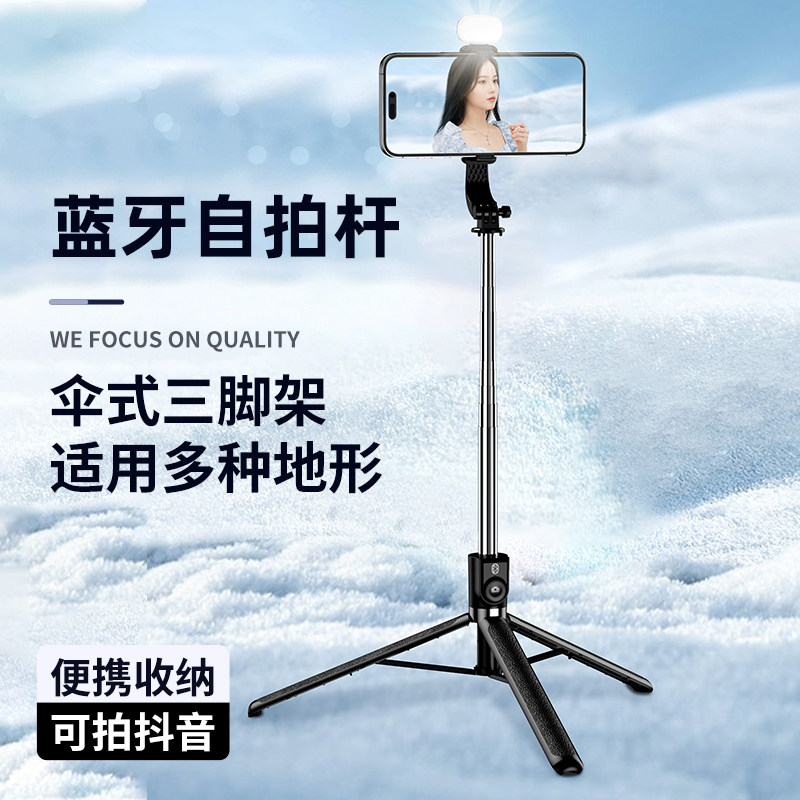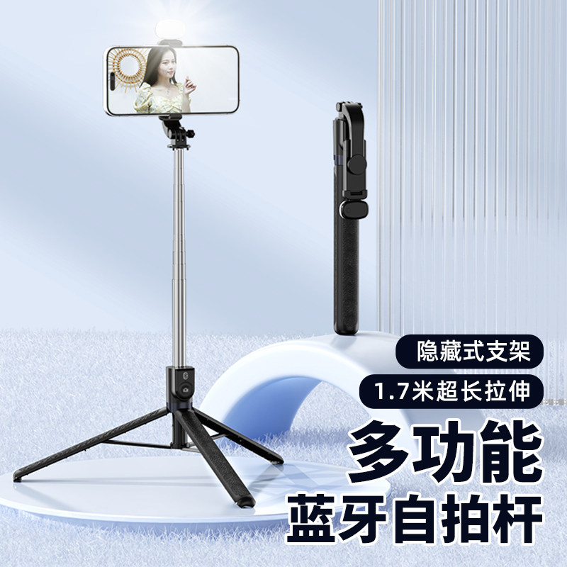 叠品A21P2025新款金属多功能补光自拍杆三脚架遥控拍照神器手机直播支架360°旋转拍照抖音蓝牙便携式防抖