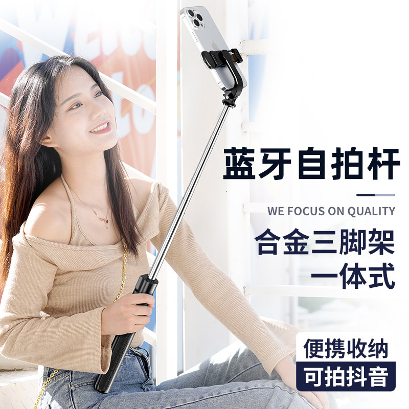 新款手机自拍杆万能防抖拍照神器可伸缩旋转蓝牙通用多功能三脚架
