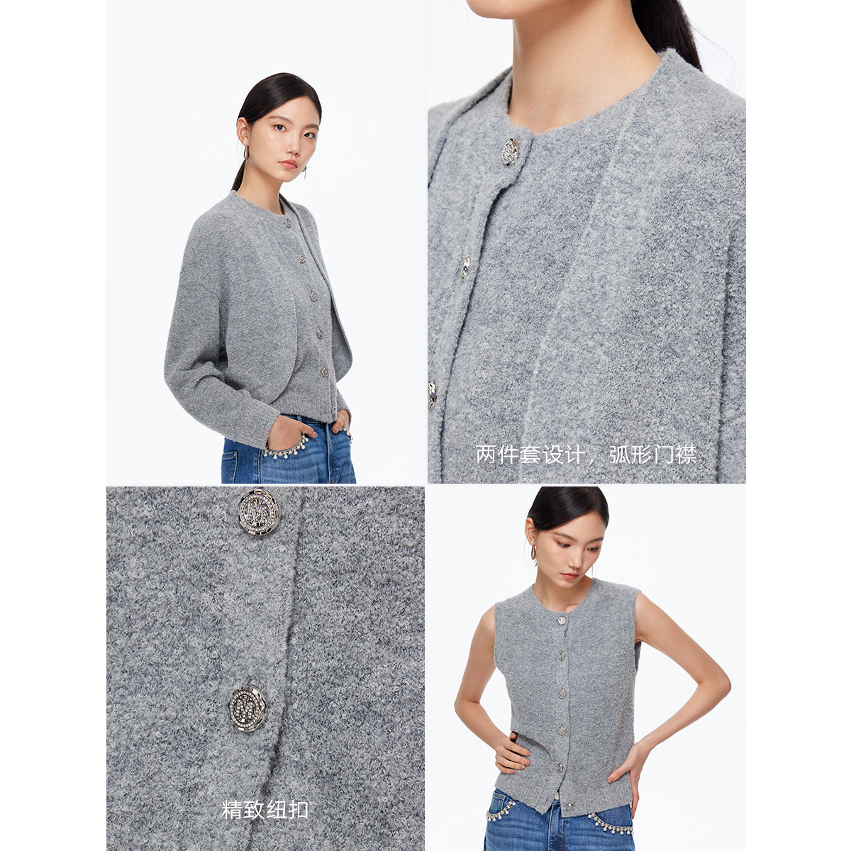 Vero Moda毛衣2025秋冬新款含绵羊毛纯色套装显瘦百搭针织开衫