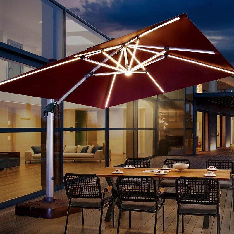 户外遮阳伞露天伞室外加厚庭院伞太阳能灯阳光伞咖啡厅移动遮阳棚