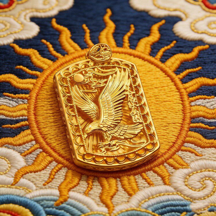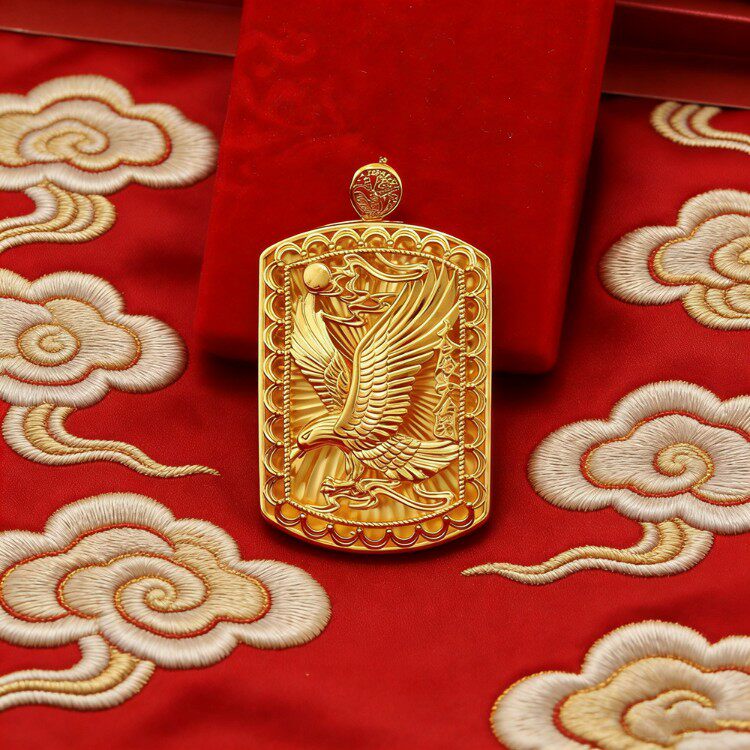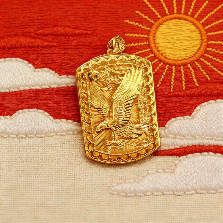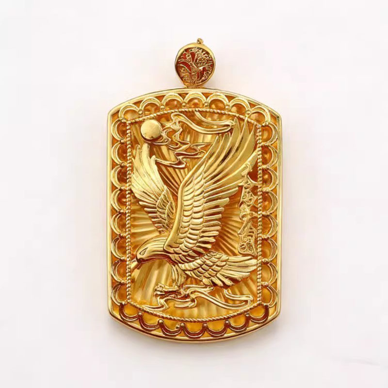 大气沙金雄鹰展翅大鹏鸟吊牌男士吊坠 黄铜镀金项链配饰饰品挂件