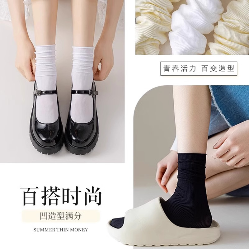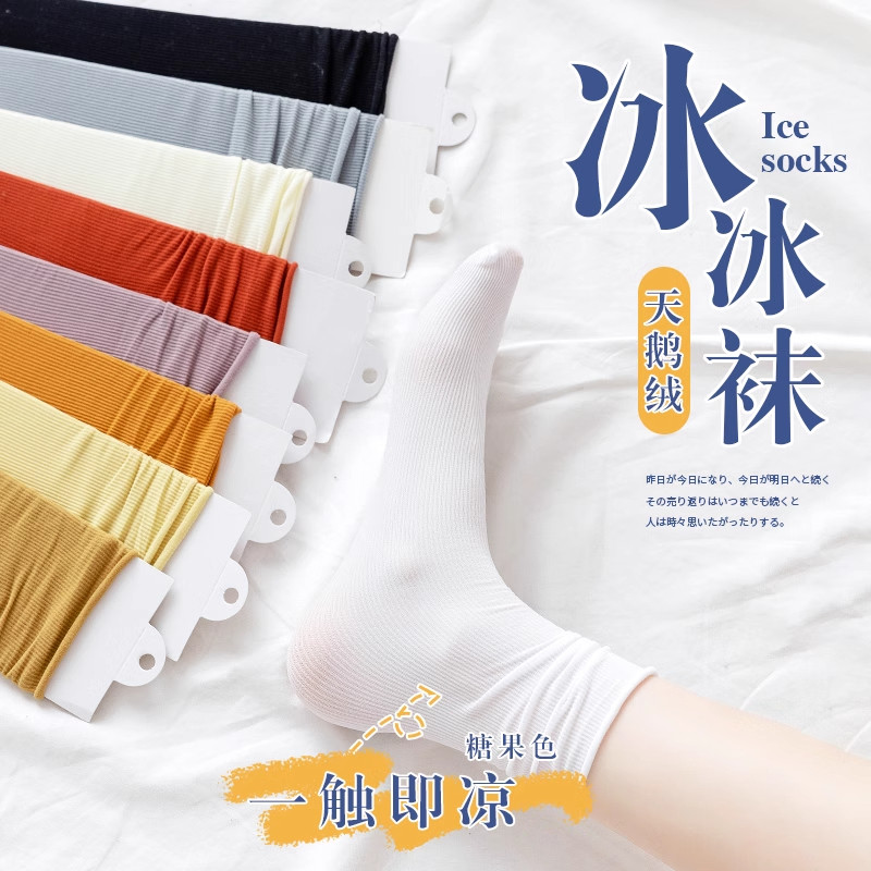 冰冰袜子女夏薄款冰丝透气运动袜无骨月子袜夏天堆堆长袜搭小皮鞋