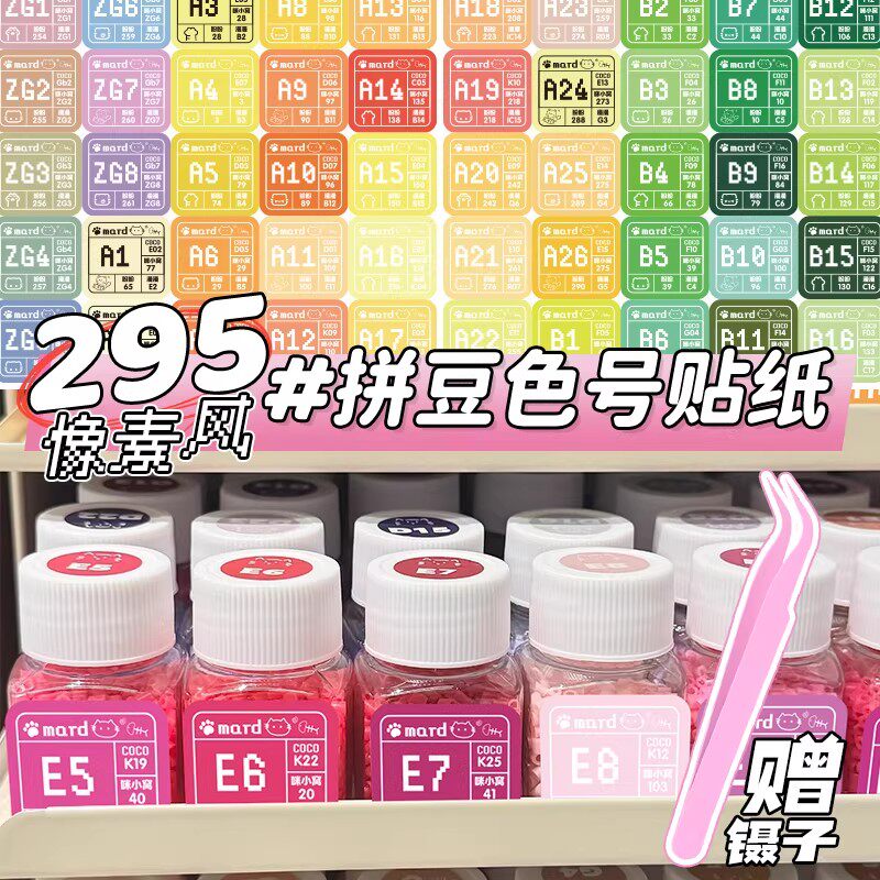 mard家拼豆色号贴纸295色像素风拼豆色号标签贴dodo婆娑COCO家转换分类色号收纳不干胶实用防水彩色标签贴画