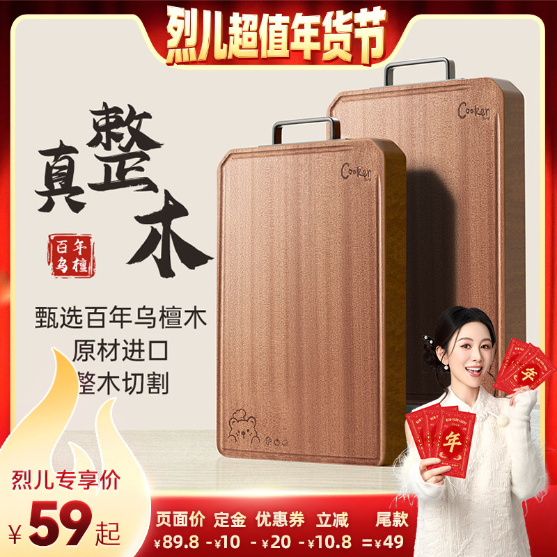 【先加购!烈儿超值年货节】炊大皇整木乌檀木菜板抗菌防霉家用