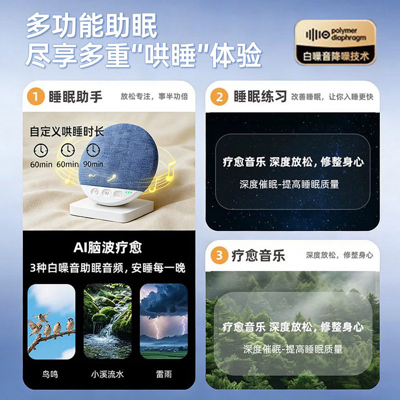 枕下音碟睡眠音箱音响超薄助眠音质好白噪音枕边蓝牙音箱2026新款