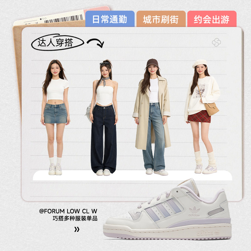 阿迪达斯三叶草女鞋FORUM低帮板鞋复古休闲鞋春季新款女士运动鞋