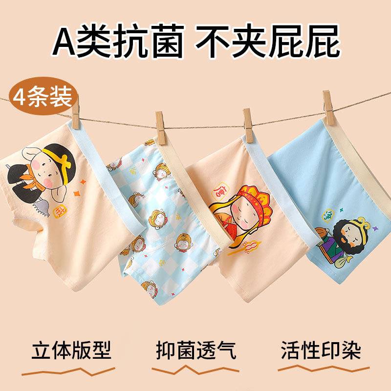 西游记10A抗菌裆儿童内裤男童纯棉中大童男孩平角短裤宝宝四角裤