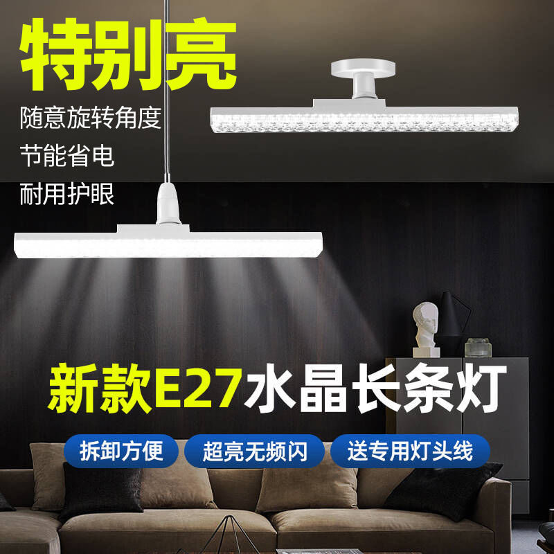 巨祥灯饰led长条灯泡超亮节能灯e27螺口灯条家用三色变光水晶吊灯