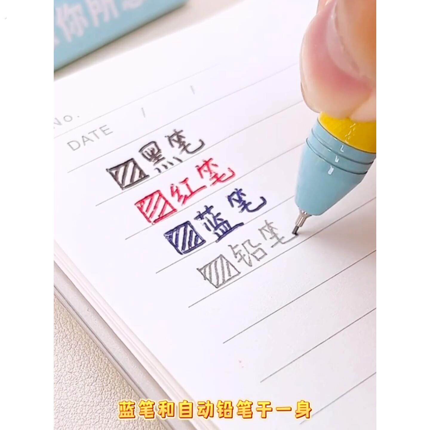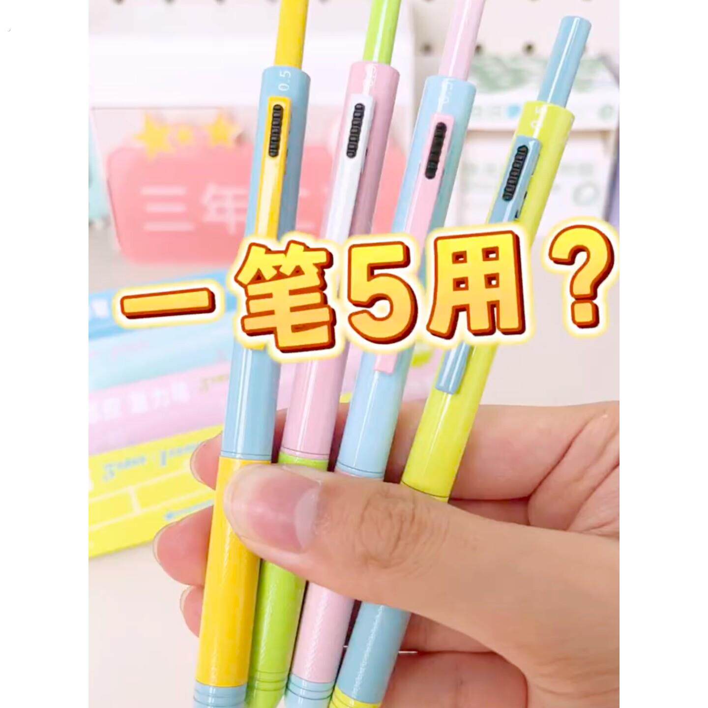 一笔五用学生刷题笔标注笔记重点笔自动铅笔学生四色高颜值中性笔