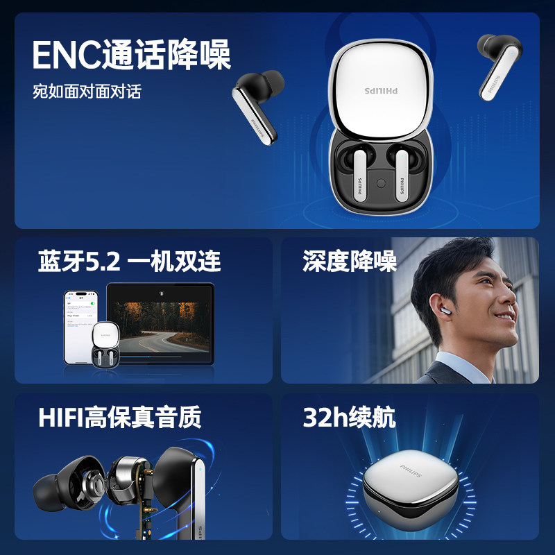 飞利浦8号会议蓝牙耳机AI智能ANC降噪办公交流离线互动入耳式耳机