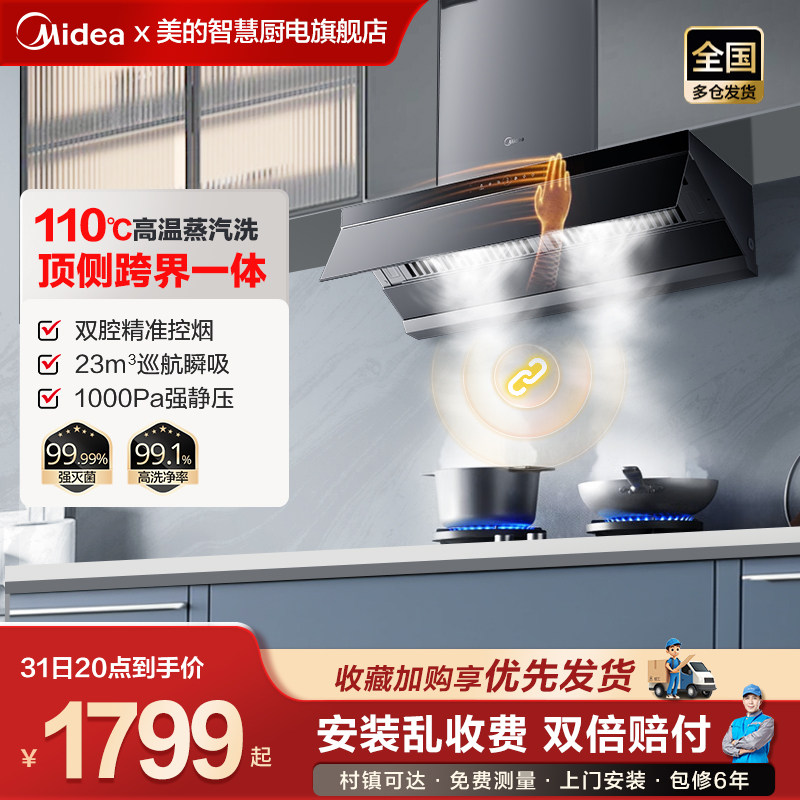 美的蒸汽洗抽油烟机厨房家用大吸力顶侧双吸一体官方旗舰店烟机