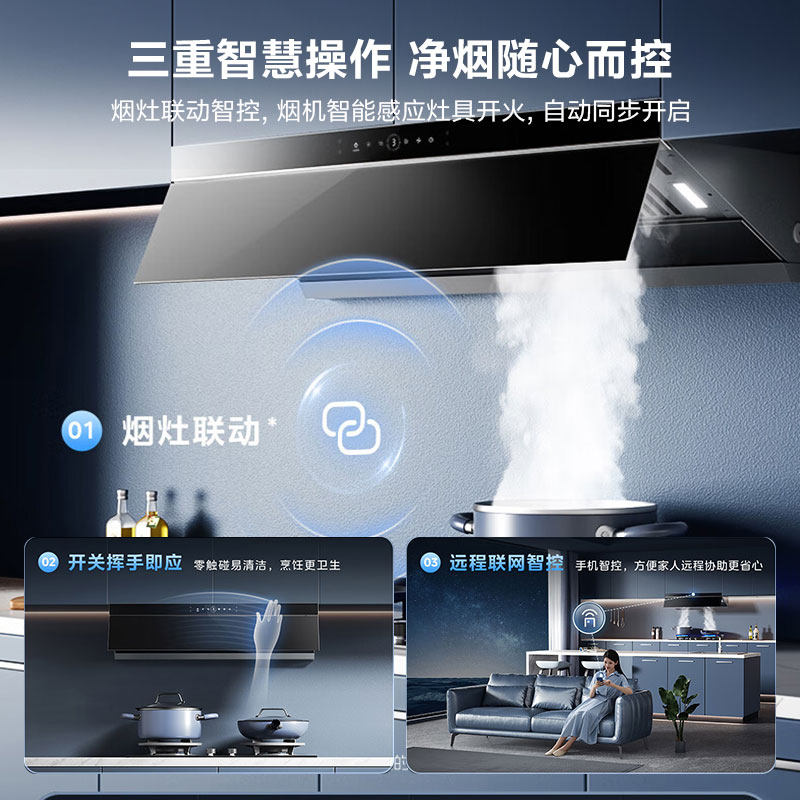 110℃高温蒸汽洗 智能烟灶联动 1000Pa静压