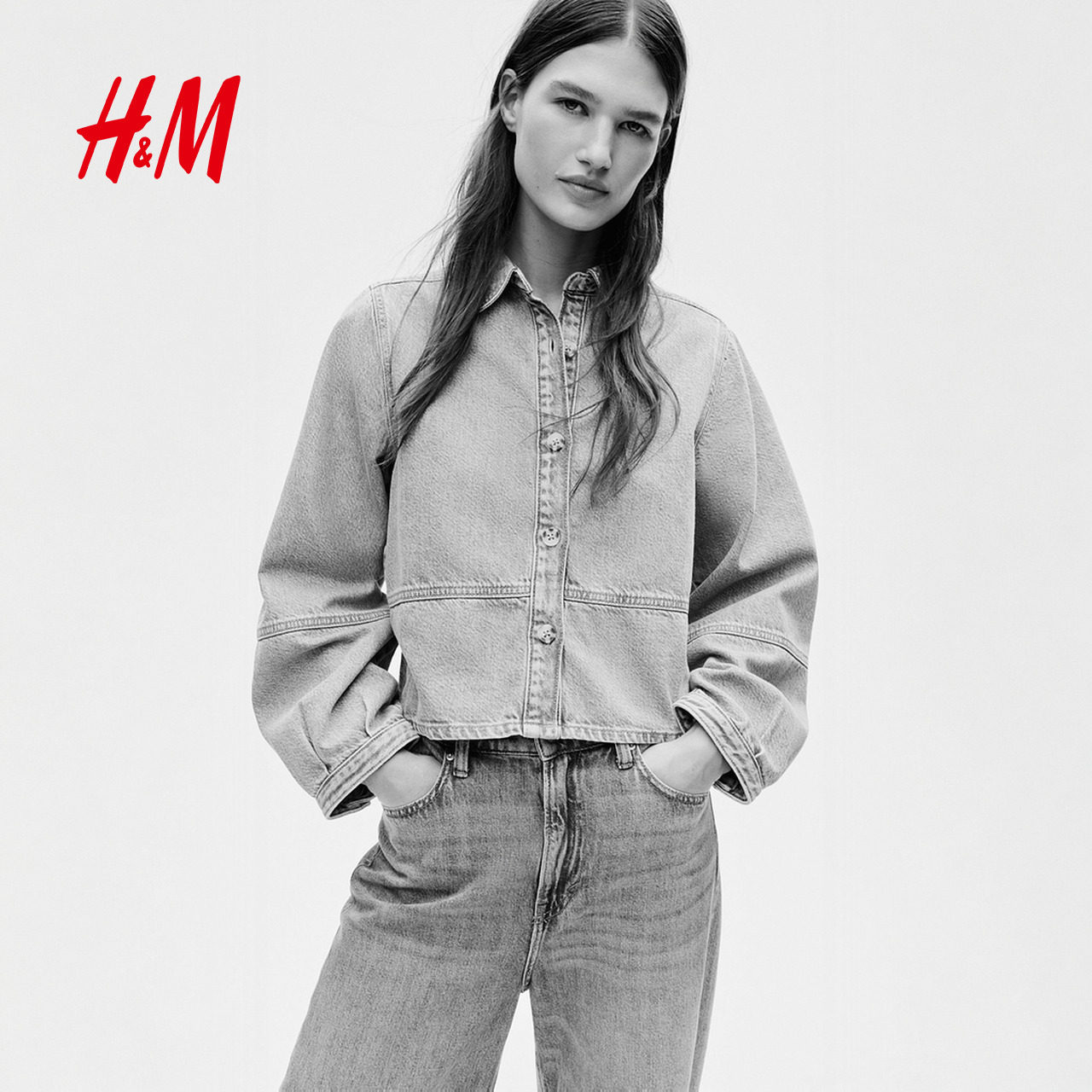 HM女装衬衫2026春季新款时尚气质潮流经典洗水牛仔衬衫1316698
