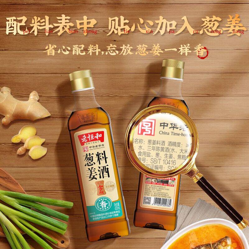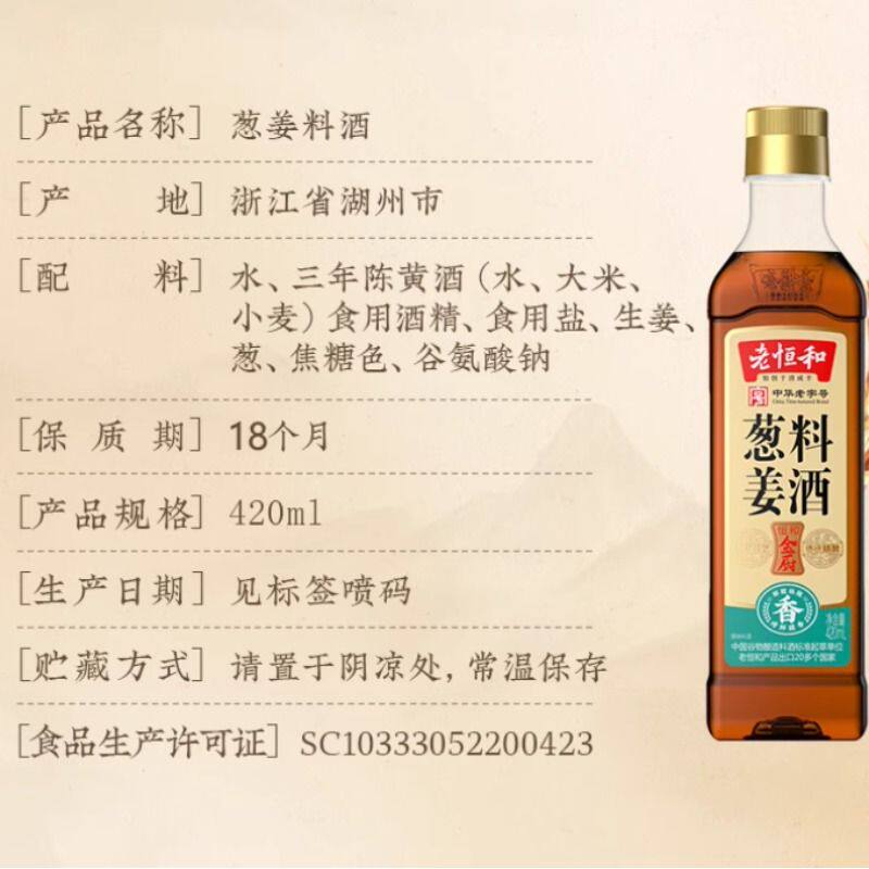 老恒和葱姜料酒420ml去腥厨房烹饪清蒸红烧提鲜料酒家用黄酒陈酿