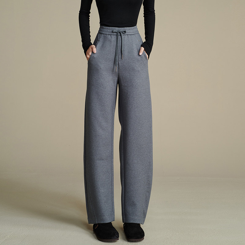灰色运动裤女小个子2026春季松紧腰运动卫裤高腰垂感阔腿裤束脚裤