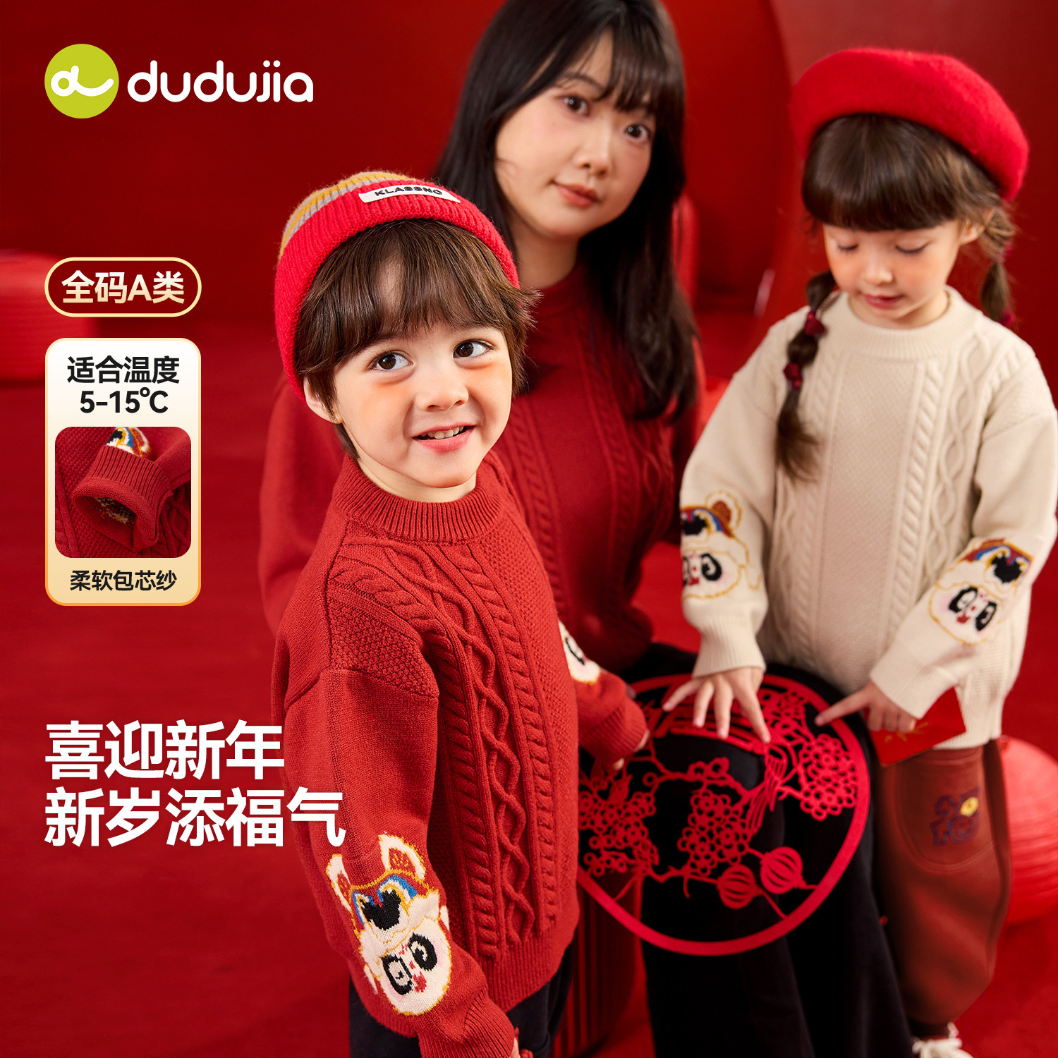 嘟嘟家儿童毛衣红色冬宝宝拜年服衣服男童冬装上衣新年唐装亲子装