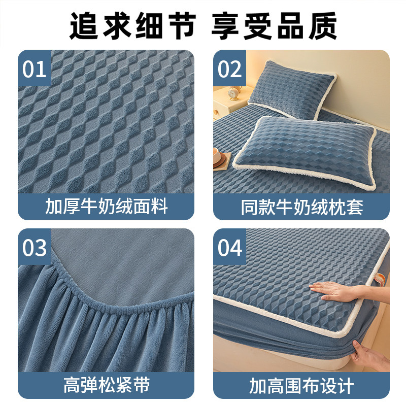 雅鹿牛奶绒床笠单件冬季加厚床垫保护罩学生宿舍单人床罩全包床套