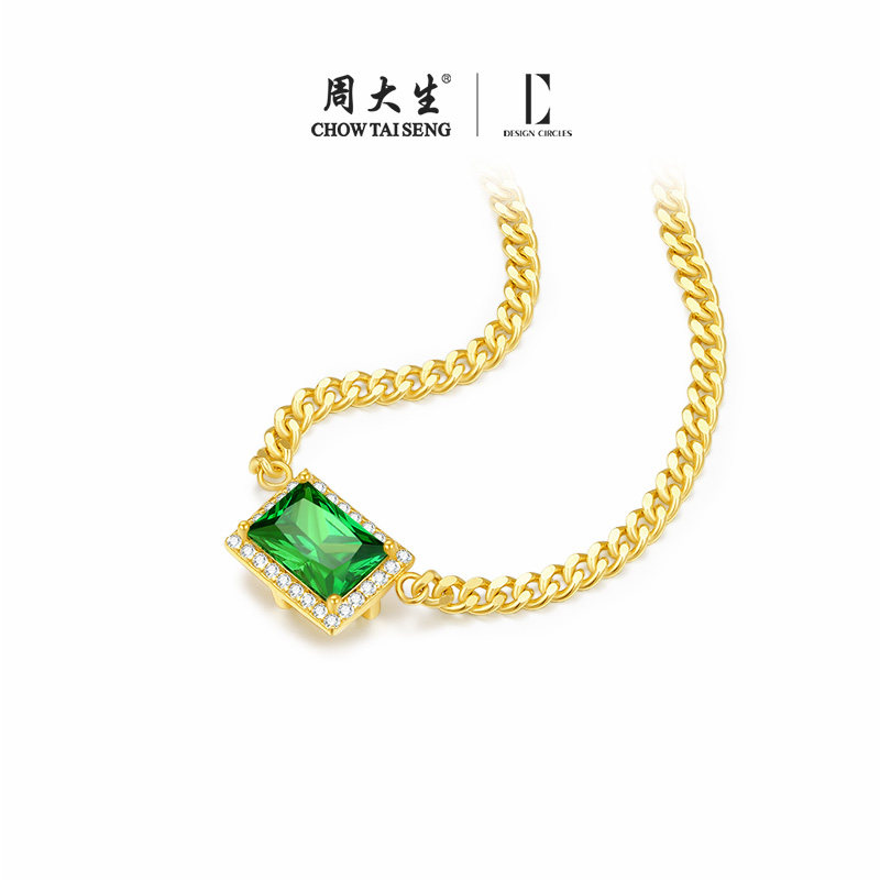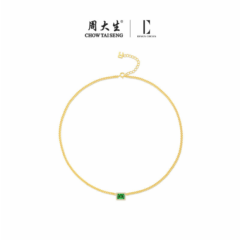 周大生DC小绿方项链纯银925轻奢高级感小众锁骨链首饰情人节礼物