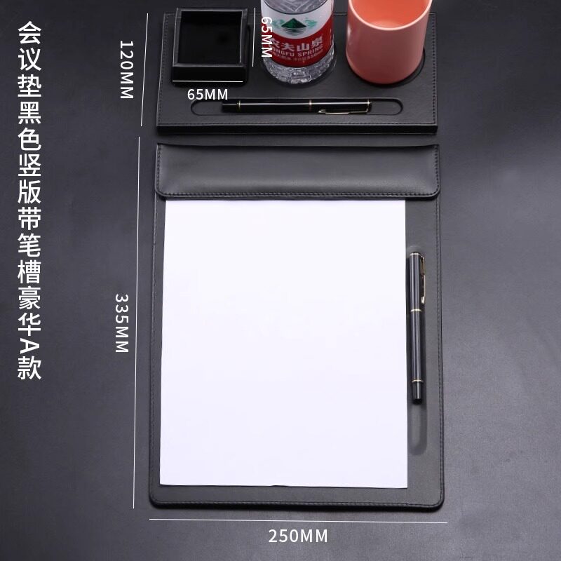 皮革a4会议夹商务会议垫板夹酒店便签夹水杯托套装小学生写字垫板桌台垫公司黑色会议文件记录用品定制LOGO