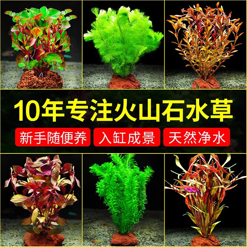 火山石水草植物鱼缸造景蜈蚣草绿菊水培摆件套餐阴性造氧真草水质