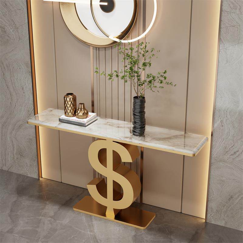 轻奢玄关桌后现代简约微晶石岩板别墅靠墙端景台装饰柜入户玄关台