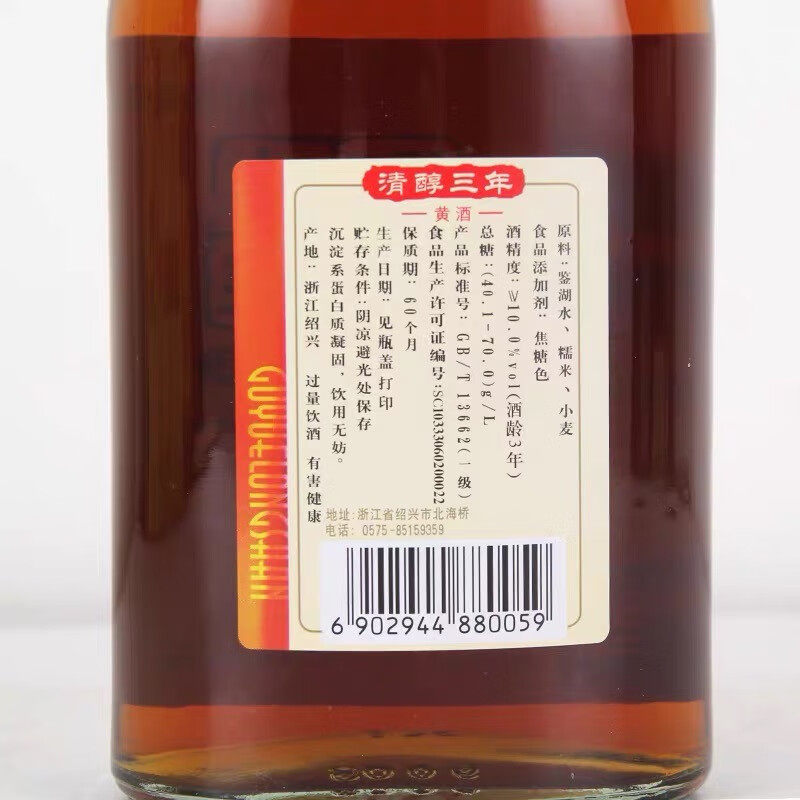 古越龙山绍兴黄酒清醇三年500ml*5瓶装绍兴酒花雕酒善酿半甜酿酒