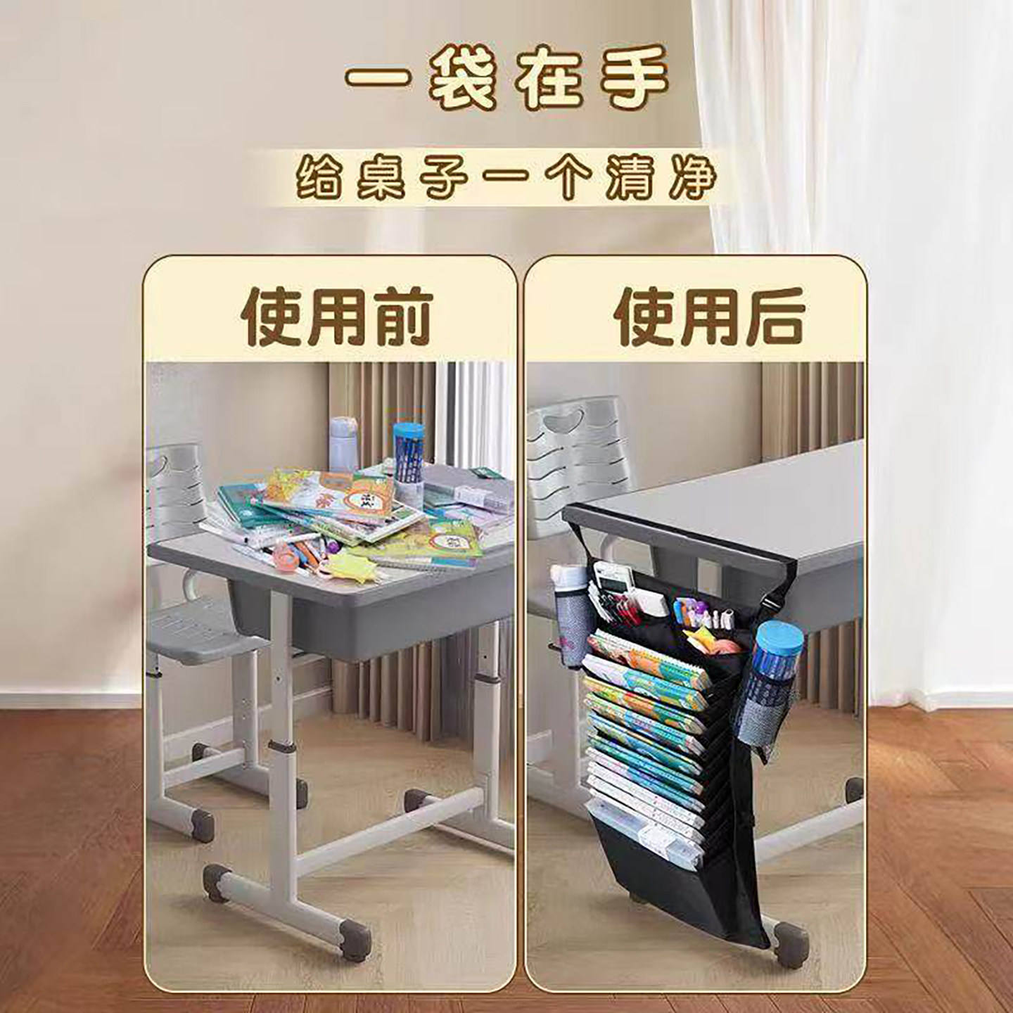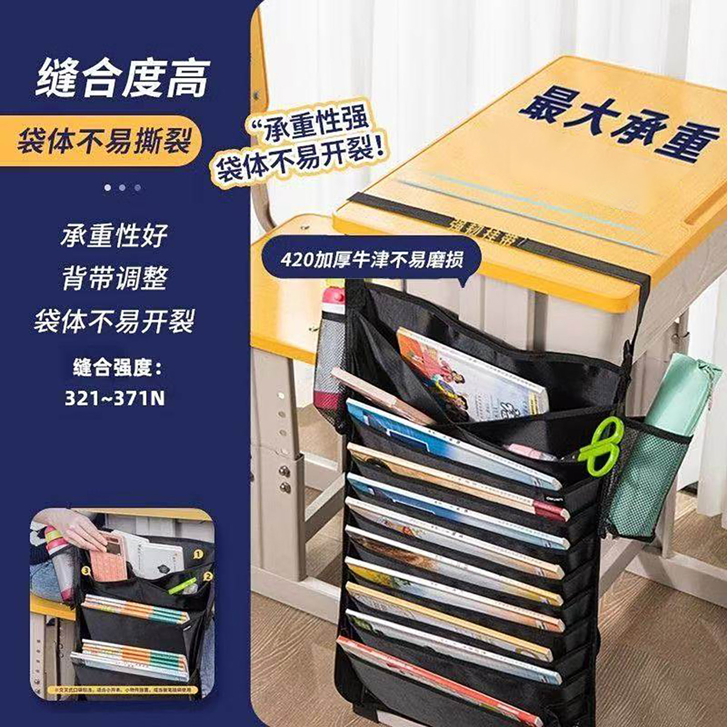 得力挂书袋课桌大容量收纳袋挂袋初中生侧挂袋学生书本书袋课桌神器高中生书桌书挂多功能书立放书袋子桌边带