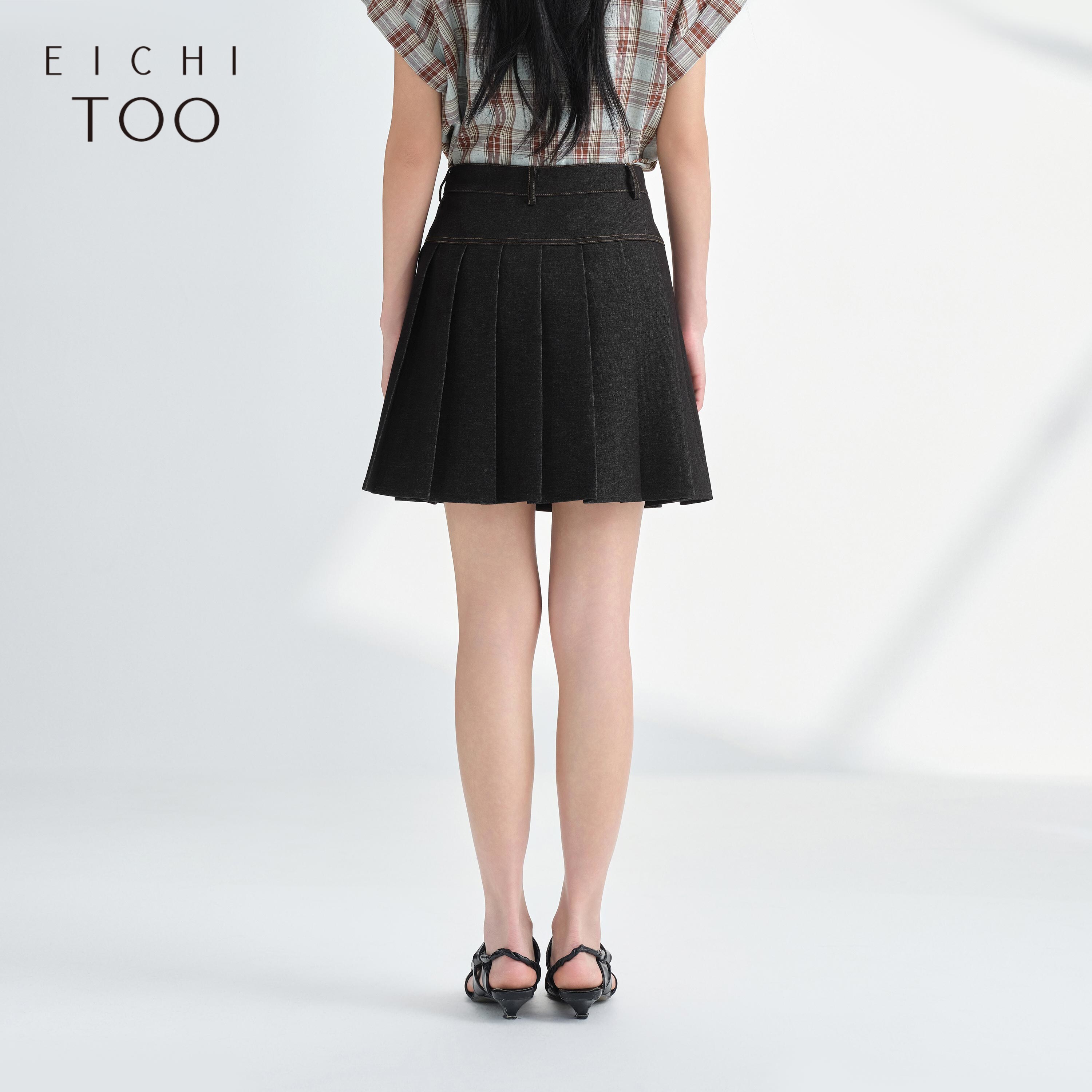 爱居兔简约时尚半身裙女2025年秋季新款经典高腰百褶裙