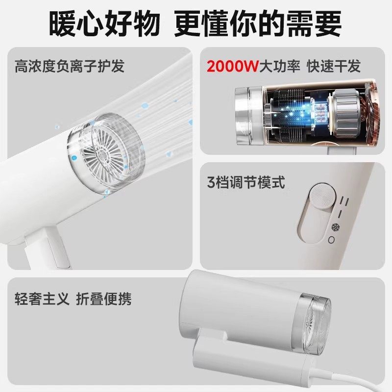 美的吹风机折叠家用负离子电吹风护发大风力吹风筒宿舍用学生便携