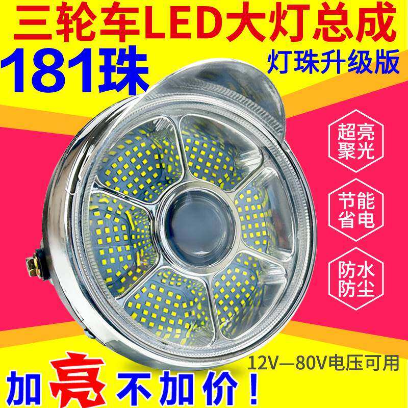 电动三轮车LED前大灯摩托车超亮改装圆大灯12v-80V通用电动车大灯
