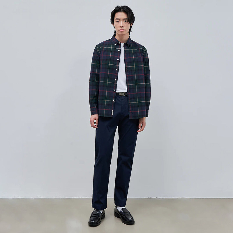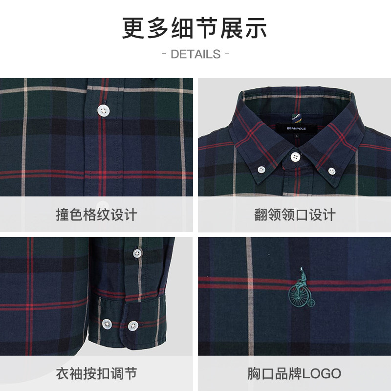 BEANPOLE滨波 男士休闲优雅撞色格纹时尚职场简约风纯棉长袖衬衫