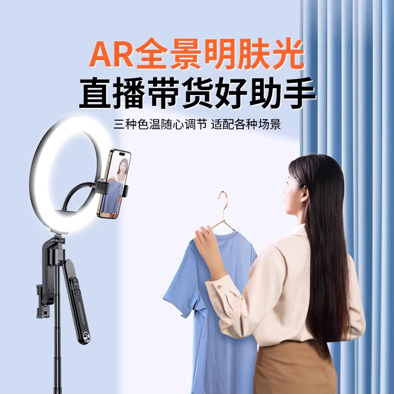 叠品A21P2025新款金属多功能补光自拍杆三脚架遥控拍照神器手机直播支架360°旋转拍照抖音蓝牙便携式防抖