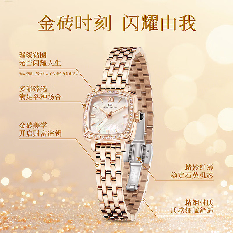 海鸥表小金砖女士手表时尚小盘女表石英表E1082L送女友新年礼物
