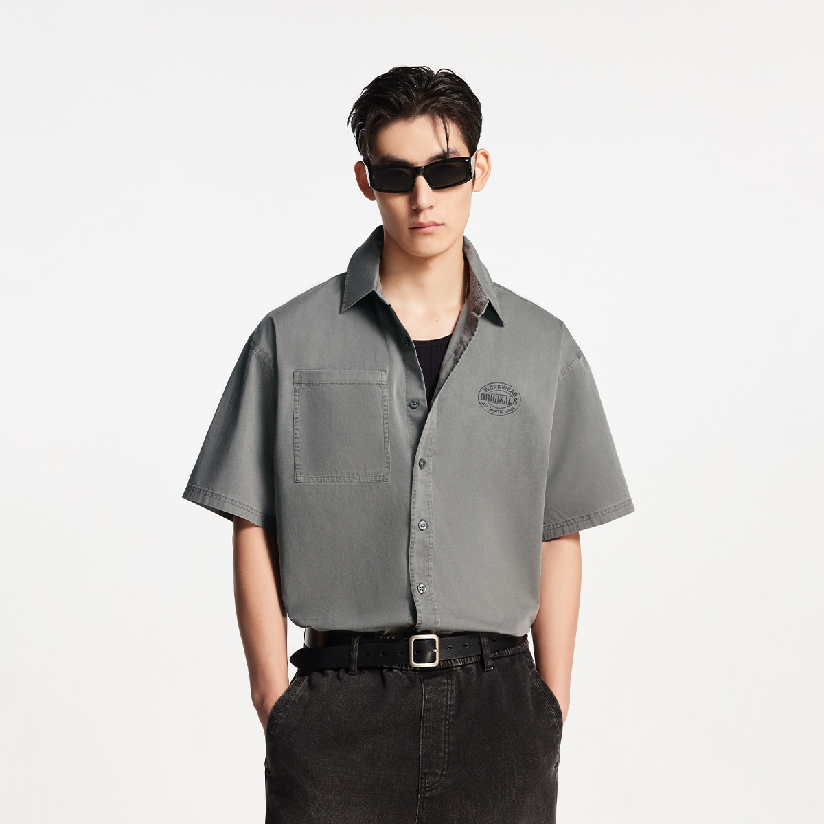 森马长袖衬衫男宽松工装外套情侣款纯色百搭上衣纯棉秋装潮酷流行