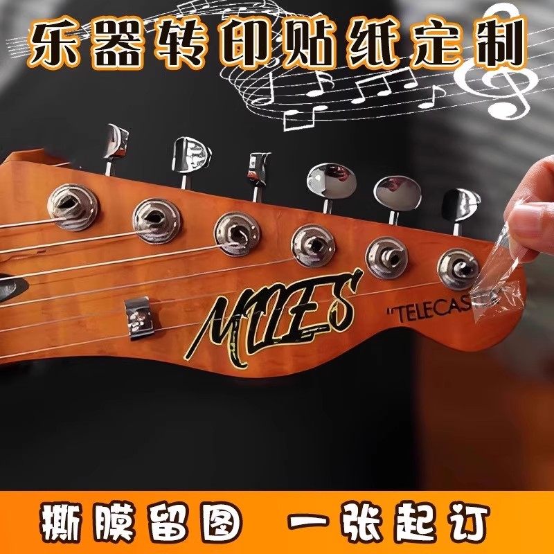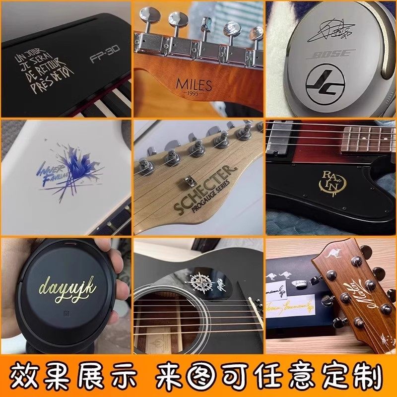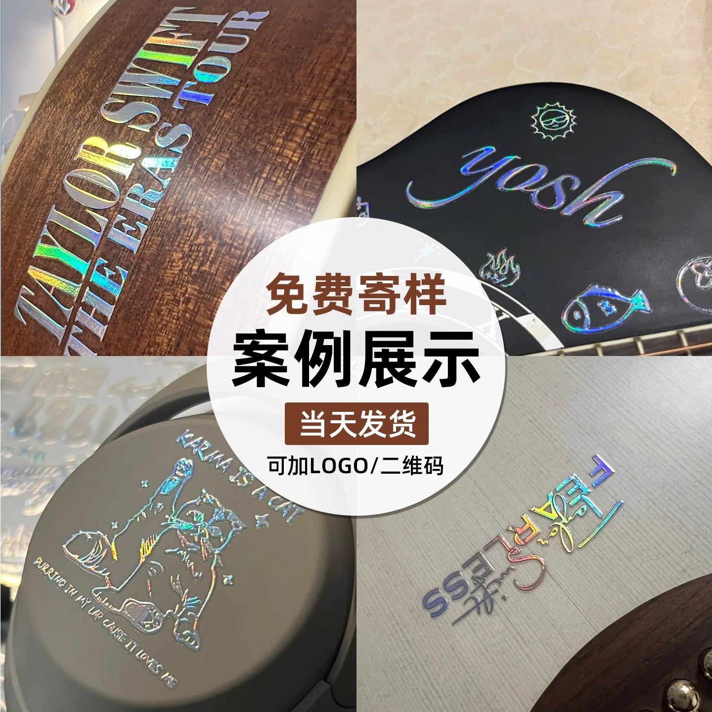 乐器贴纸定制镭射UV转印贴水晶标吉他大小提琴logo装饰DIY烫金英文名字丝印立体镂空标签撕膜留字防水不干胶