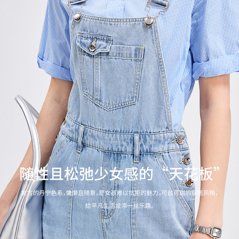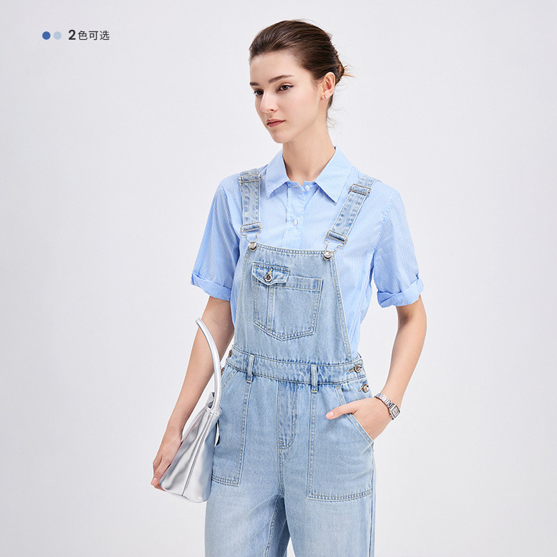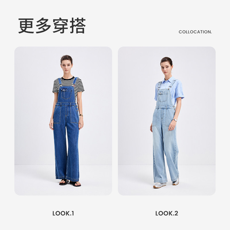 [天丝]Navigare意大利小帆船蓝色牛仔背带裤女秋季显瘦直筒裤