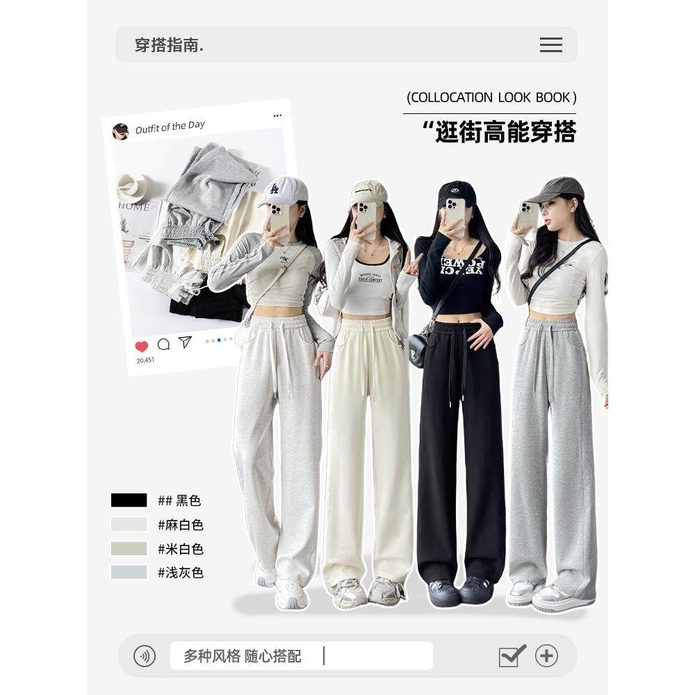 窄版阔腿裤女春秋2025秋冬大码休闲运动卫裤子白色灰色加长小个子