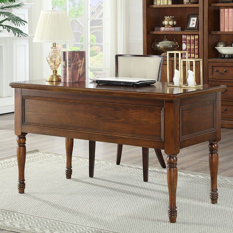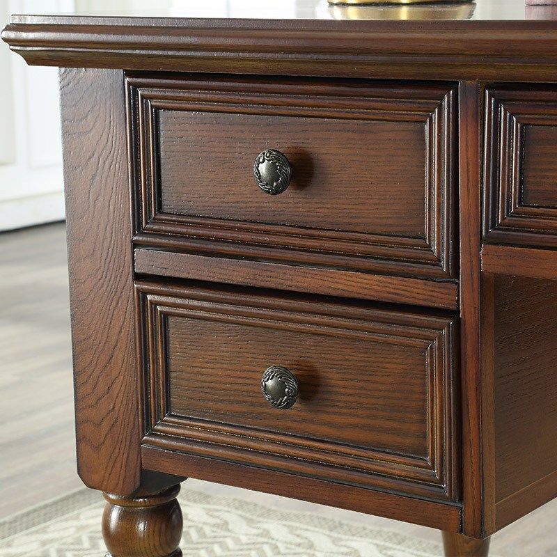 美式乡村实木书桌 书房简约家用办公桌 高档写字T桌欧式家具写字