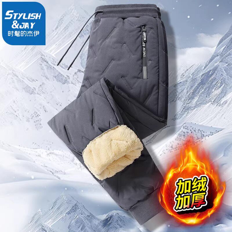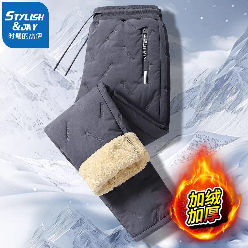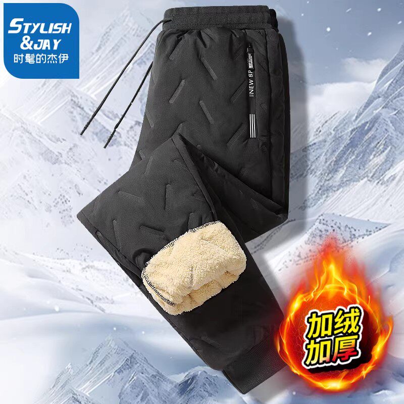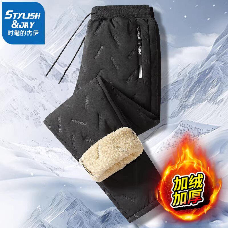 冬季男大码休闲羊羔绒加绒加厚冬季外穿保暖宽松直筒束脚防风棉裤