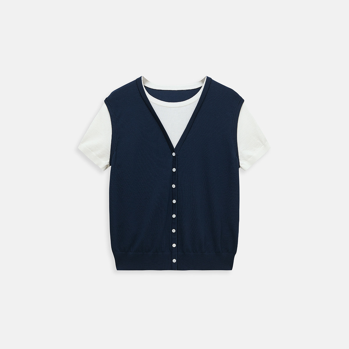 【新品】OCHIRLY欧时力 针织衫2026春夏假两件撞色拼接短袖空调衫